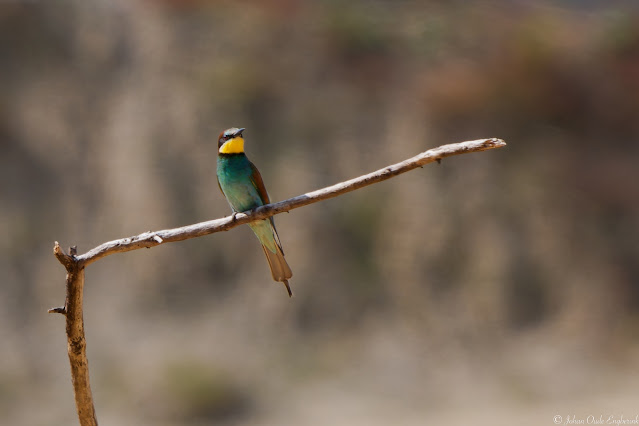 Het is al prachtig weer als we vanmorgen vroeg naar buiten kijken. "Laten we maar op pad gaan voor een mooie wandeling." Waar naartoe? We besluiten naar de noordelijke Engbertdijksvenen te gaan, met dit heldere weer een prachtig open gebied, met wie weet de klapekster. We maken een tussenstop bij de Oosterweilanden waar noch watervogels zijn, noch een bijzondere soort als de hop is. Dat wordt bevestigd door twee aanwezige vogelaars, dus we rijden maar snel via de Paterswal verder. Vanaf de parkeerplaats bij Kloosterhaar lopen we richting het heideveld. Na nog geen vijftig meter vliegt een grote bonte specht in een dode boom en laat mij rustig een paar foto's maken.