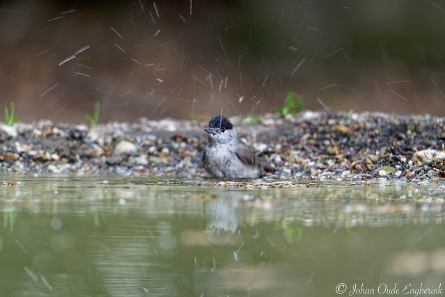 Gisteren had ik samen met Peter en Everard een fotohut gehuurd in Twente. De hut lag verscholen in een mooi stukje bos, waarin een waterpartij gemaakt was. De zaak was goed voor elkaar met drie flinke bureaustoelen en ook schommelkoppen om de camera op te bevestigen. Van 7.15 tot 16.45 hebben we de vogels die voorbij kwamen geobserveerd en vastgelegd op de camera. Hieronder een indruk door van elk waargenomen soort een of twee foto's te plaatsen. Ik begin met elke twee foto's van de grote bonte specht en de middelste bonte specht die regelmatig op bezoek kwamen. Tussen de vogels door nog een bosmuis en een eekhoorn.